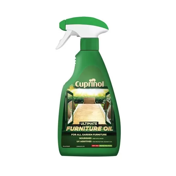 Cuprinol Ultimate Furniture Oil- is a high performance oil for all bare and previously oiled hardwood garden furniture. The 3 in 1 formula prepares, colours and enhances the furniture whilst protecting the wood from weathering. The UV additives give extra protection against sun damage whilst the added wax makes the wood fully water repellent. The oil nourishes deep into the wood replacing natural oils lost and enhances its natural beauty. The furniture oil gives longer lasting protection than traditional teak oil and is water based with low VOC content.