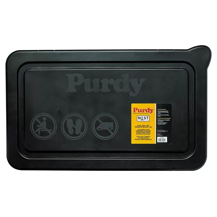 Purdy Dual Roll Off Bucket Lid- creates a portable system to move paint and supplies with one trip. The Dual Roll-Off Premium Bucket Lid clips onto the Dual Roll-Off Bucket, allowing users to store paint in the bucket between coats.
