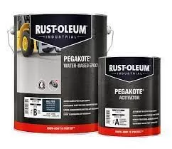 Rust-oleum Pegakote- is a two-pack, satin gloss epoxy floor paint for garages, warehouses, showrooms, corridors, indoor car parks, workshops etc.