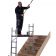 - Combines a stepladder, extension ladder, stairwell ladder and level platform and stairwell platform all in one product